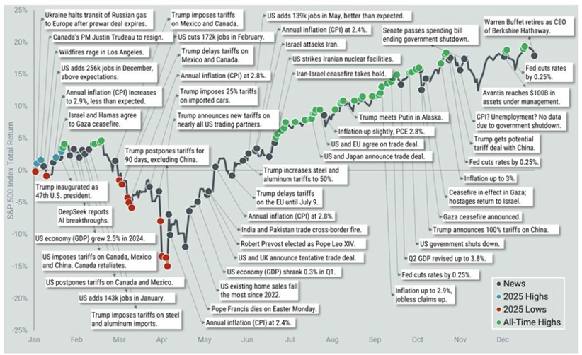 Finally, to provide an idea of those events which had a bearing on markets last year, we received this overview of 2025 in an email last week. It will be interesting to see how this year’s chart takes shape over the course of 2026.